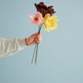The paper flowers from Studio About are handmade and carefully folded into small tubes. When you receive your flower, unfold the leaves yourself to bring it to life. The crepe paper is easy to shape, so you can adjust the look of the flower and give it a personal touch.