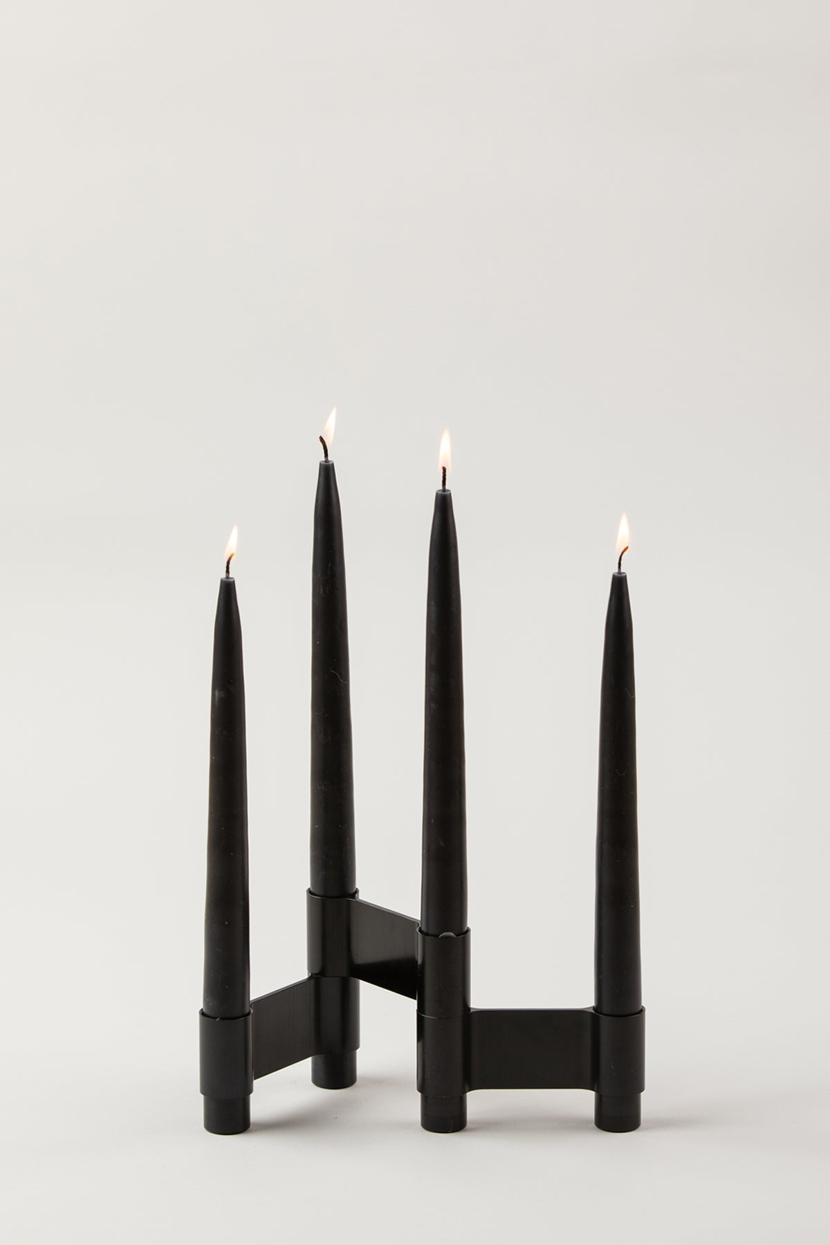 The series of LINK candlesticks is a collection of modular candlesticks that can be used and placed individually or put together forming one larger candlestick. The candlesticks are made of aluminium and this is the black version.