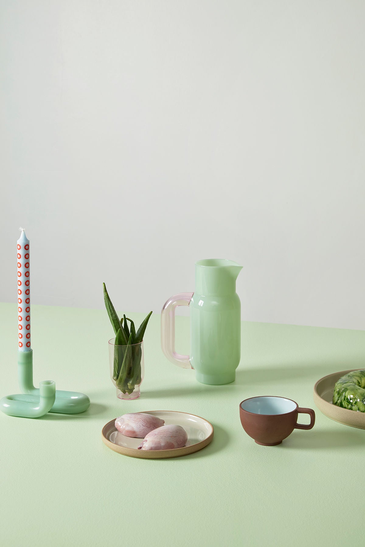 The candle holder, as shown here in Milky Jade, is modern and timeless, bringing elegance to any room. The candle holder is decorative on its own but can also create coziness when paired with different taper candles. Studio About’s new candle holder is excellent for creating a moody and warm atmosphere. The candle holder is beautiful alone, but you can also combine it with other decorative elements like the Standing Bubble to create a unique and personal expression. The candle holder is available here in Milky Jade, but can also be found in 3 other colors, so you can find the perfect one for your home.