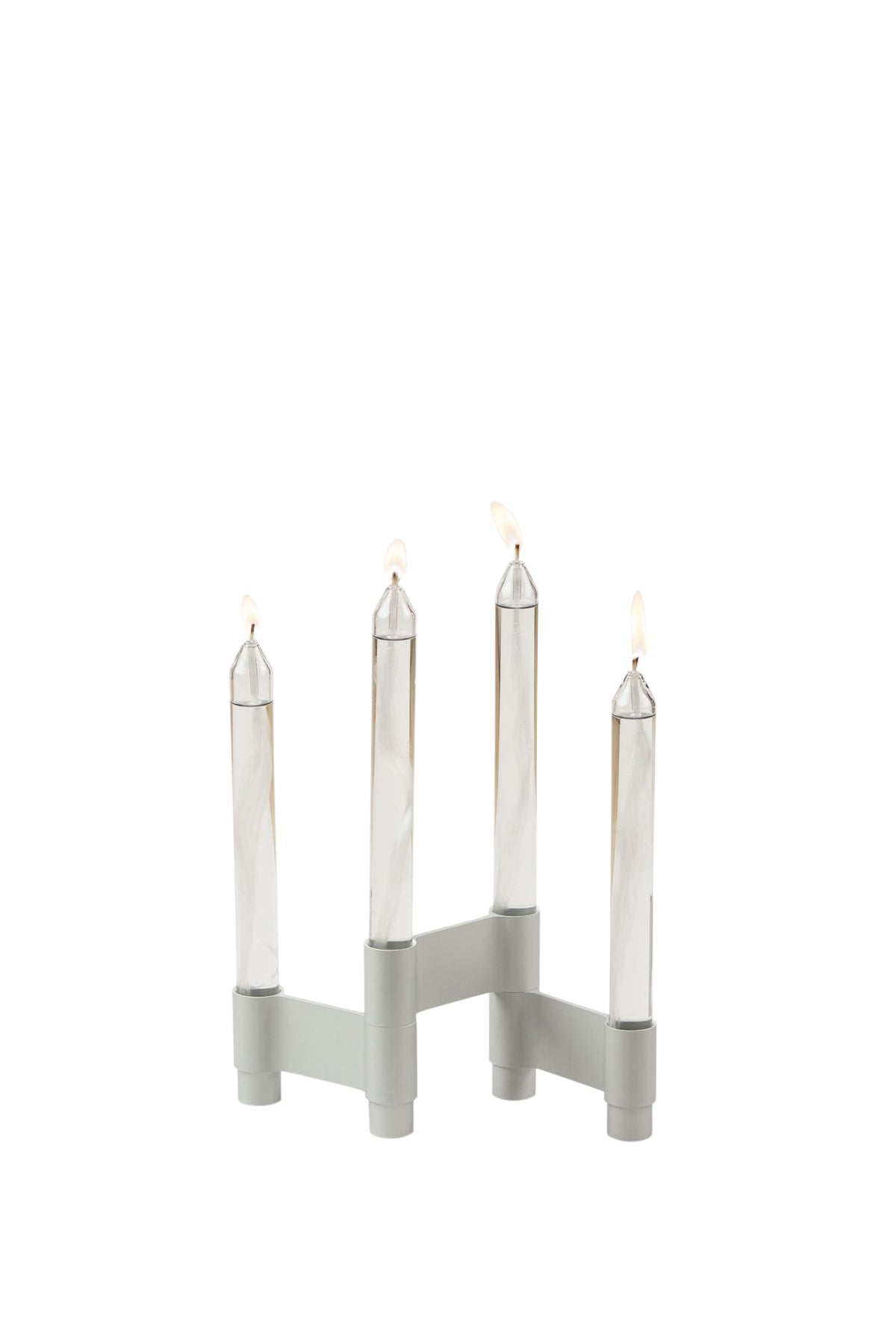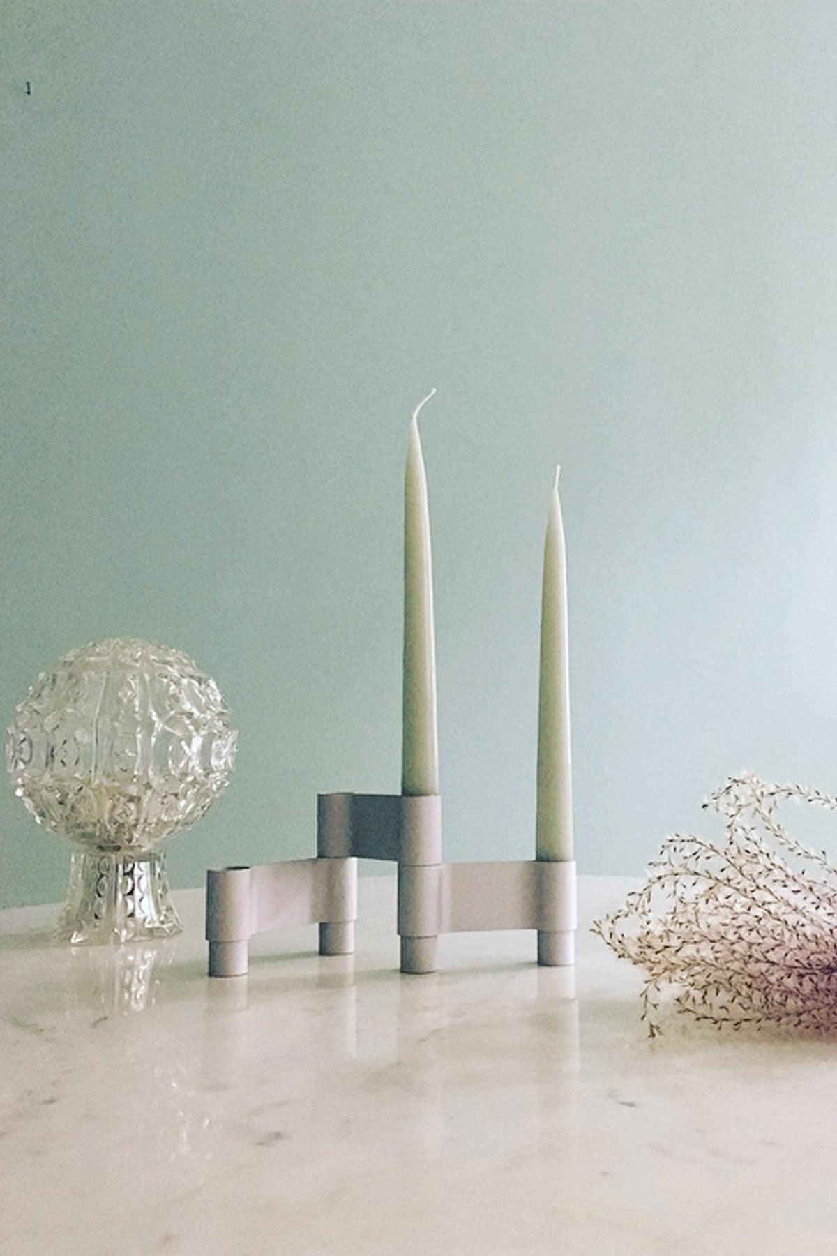 The series of LINK candlesticks is a collection of modular candlesticks that can be used and placed individually or put together forming one larger candlestick. The candlesticks are made of aluminium and this is the matt grey aluminium version.