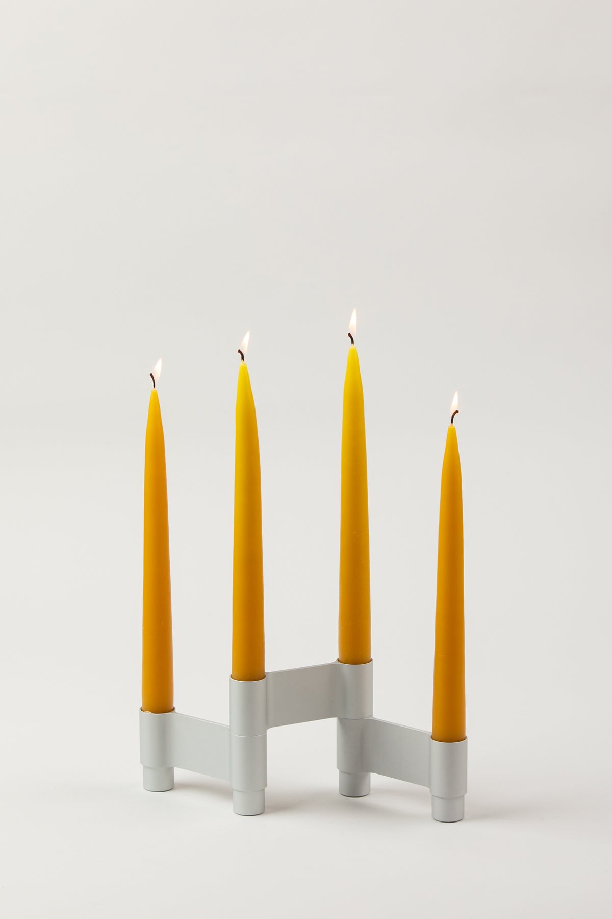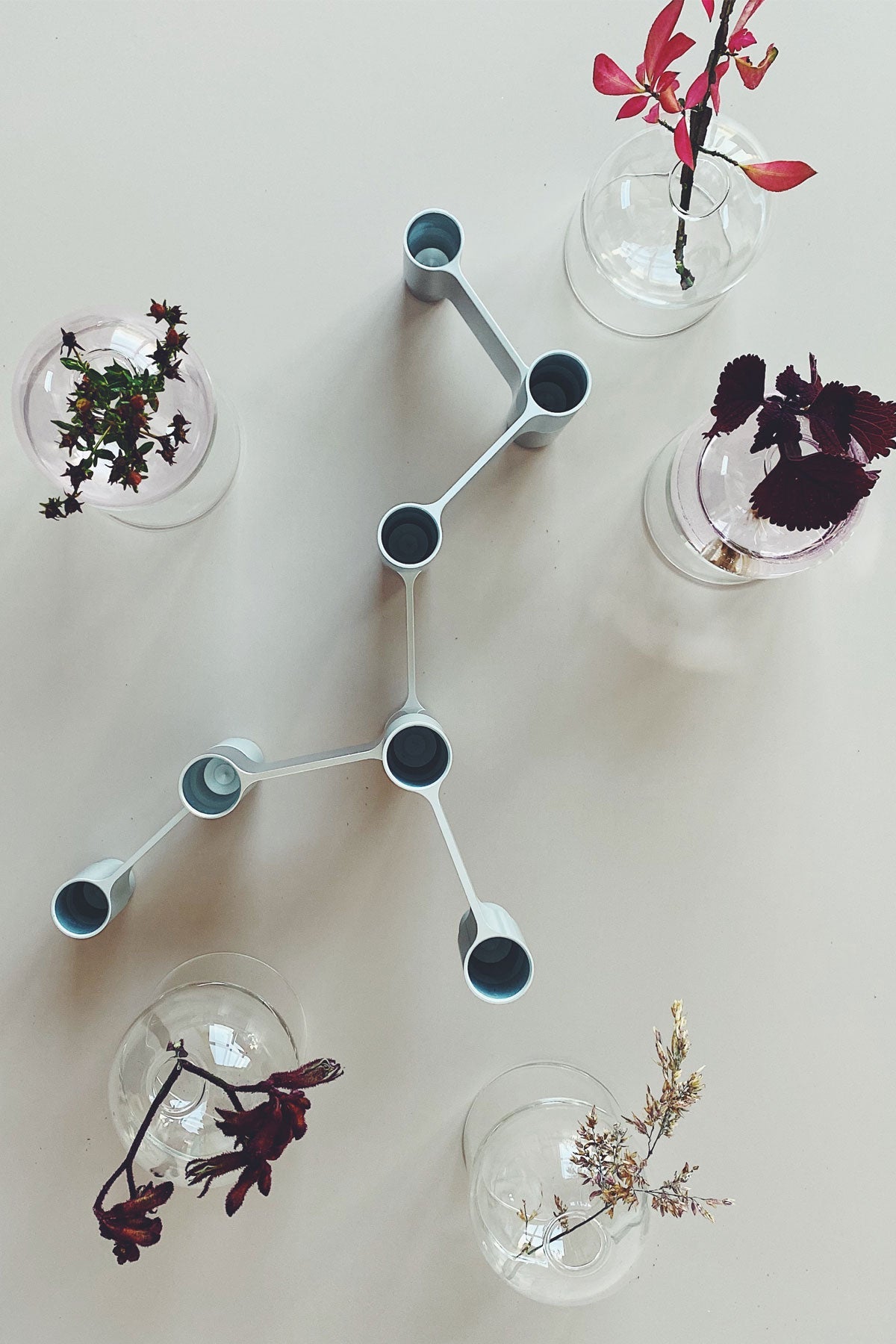 The LINK candlestick is quite minimalist in its expression, but it serves several functions depending on how many LINKS and types of metals are put together. Use a simple candlestick on the shelf or create an organic table setting, where the LINK candlestick elegantly cuts across the table. Use your LINK stage depending on the season and needs. For Christmas, you can easily use it as an Advent wreath.