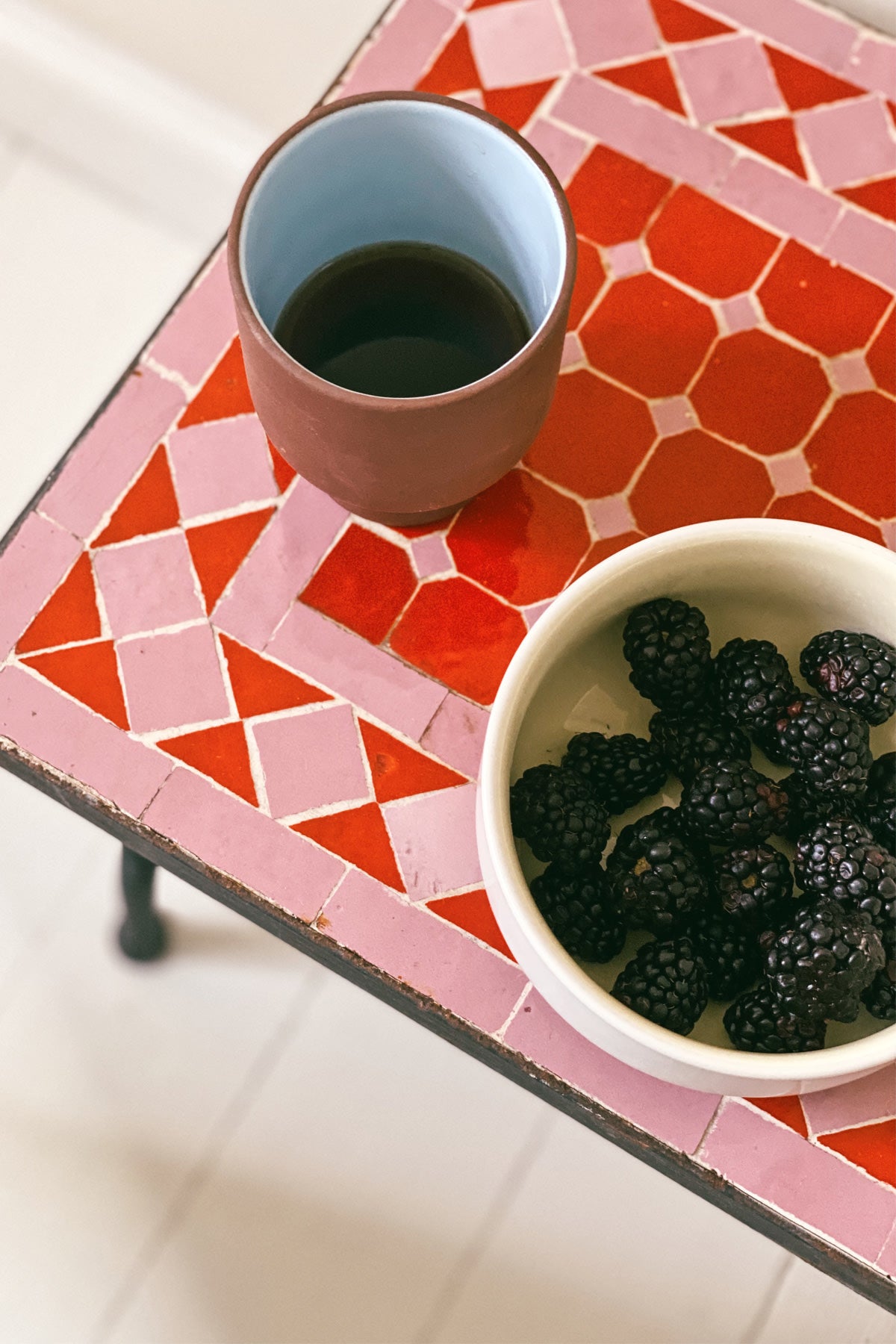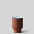 The cup can be easily cleaned with warm water and soap. It is also dishwasher, freezer and microwave safe. It cannot be placed in the oven. The cup is made of natural clay, which means that the unglazed parts will patina over time. This is part of the design and will only add character to the cup. The ceramic cup also comes in the colors TERRACOTTA/RED, IVORY/LIGHT YELLOW and SAND/GREY, and is also available as plates and bowls.