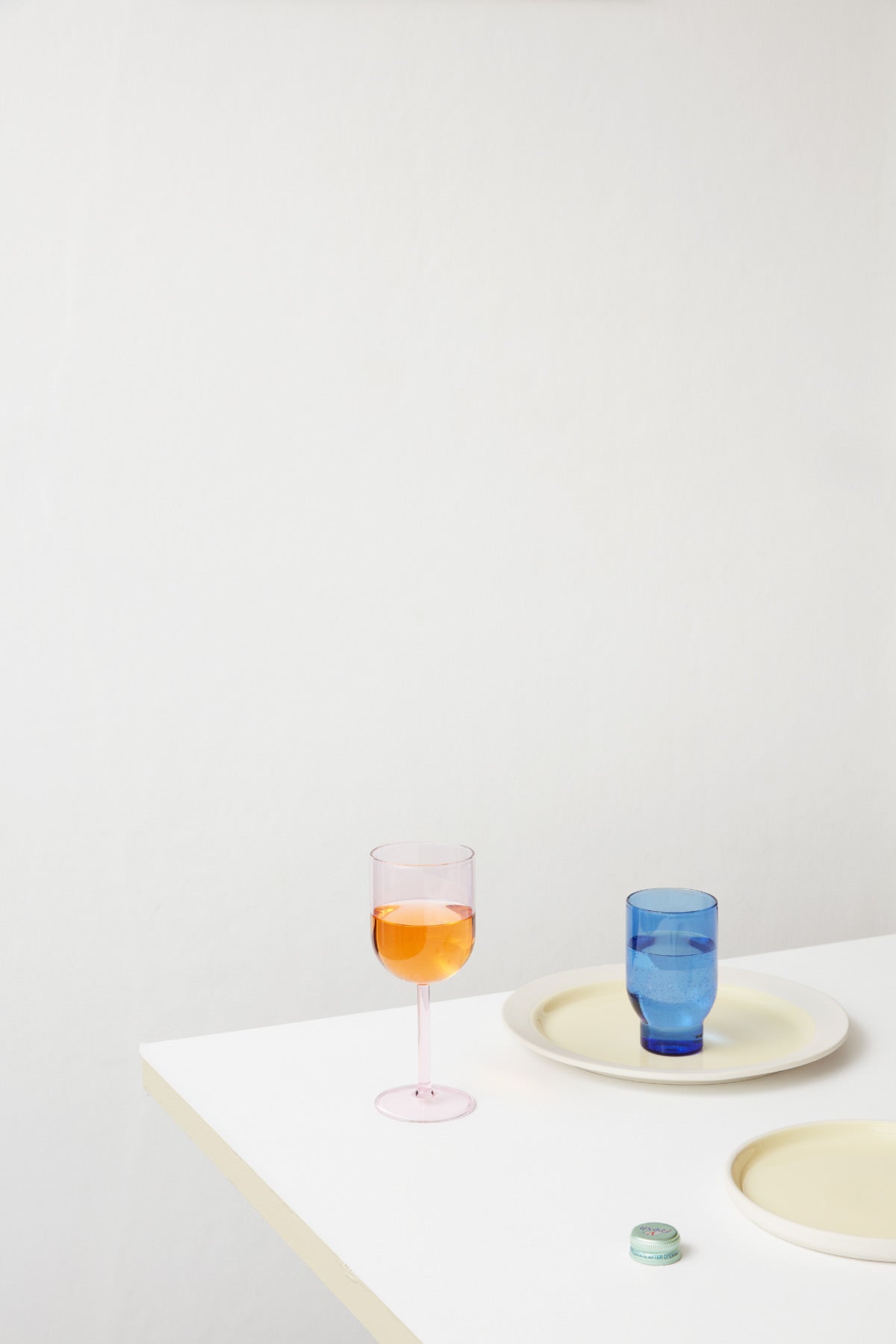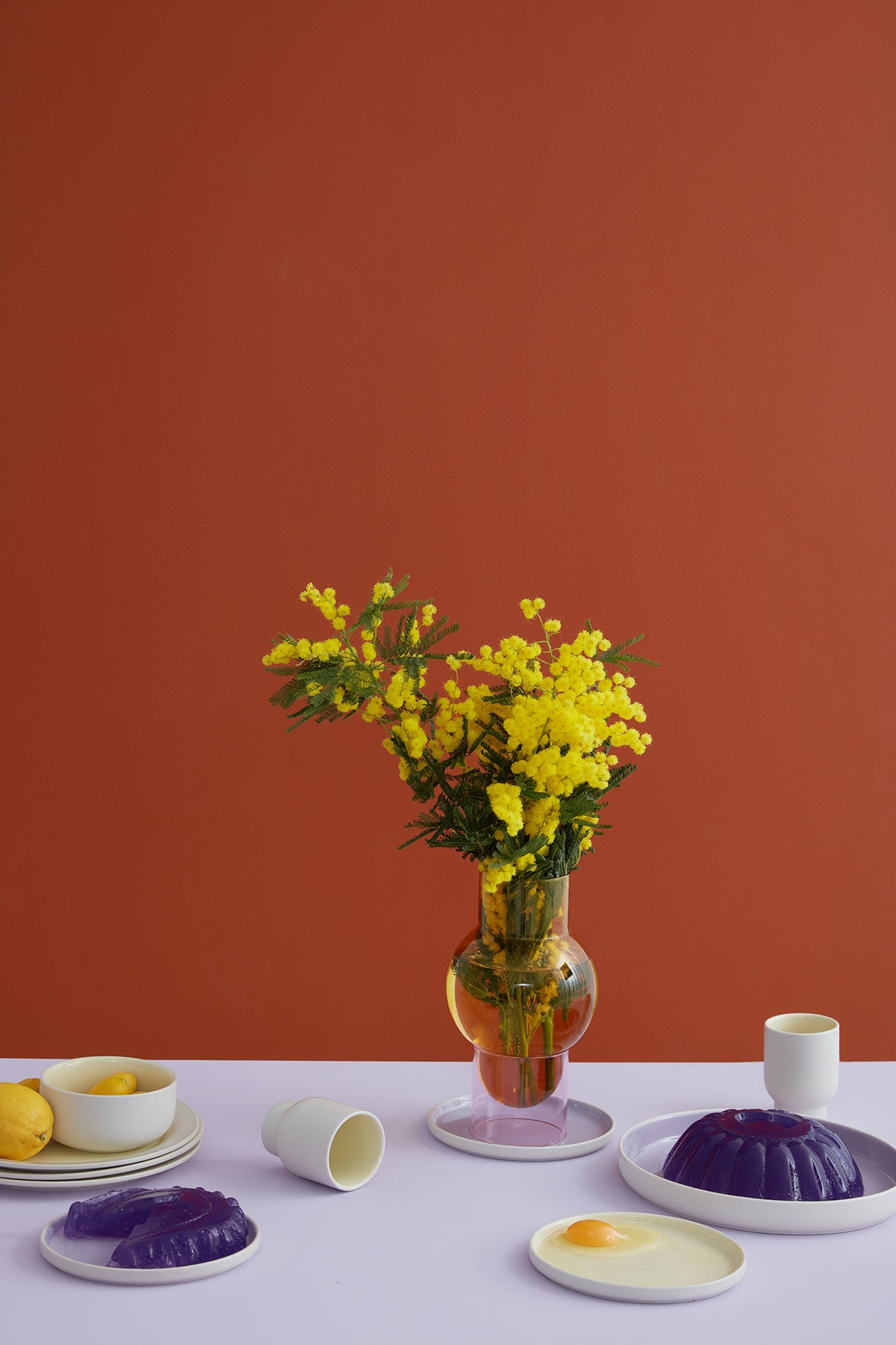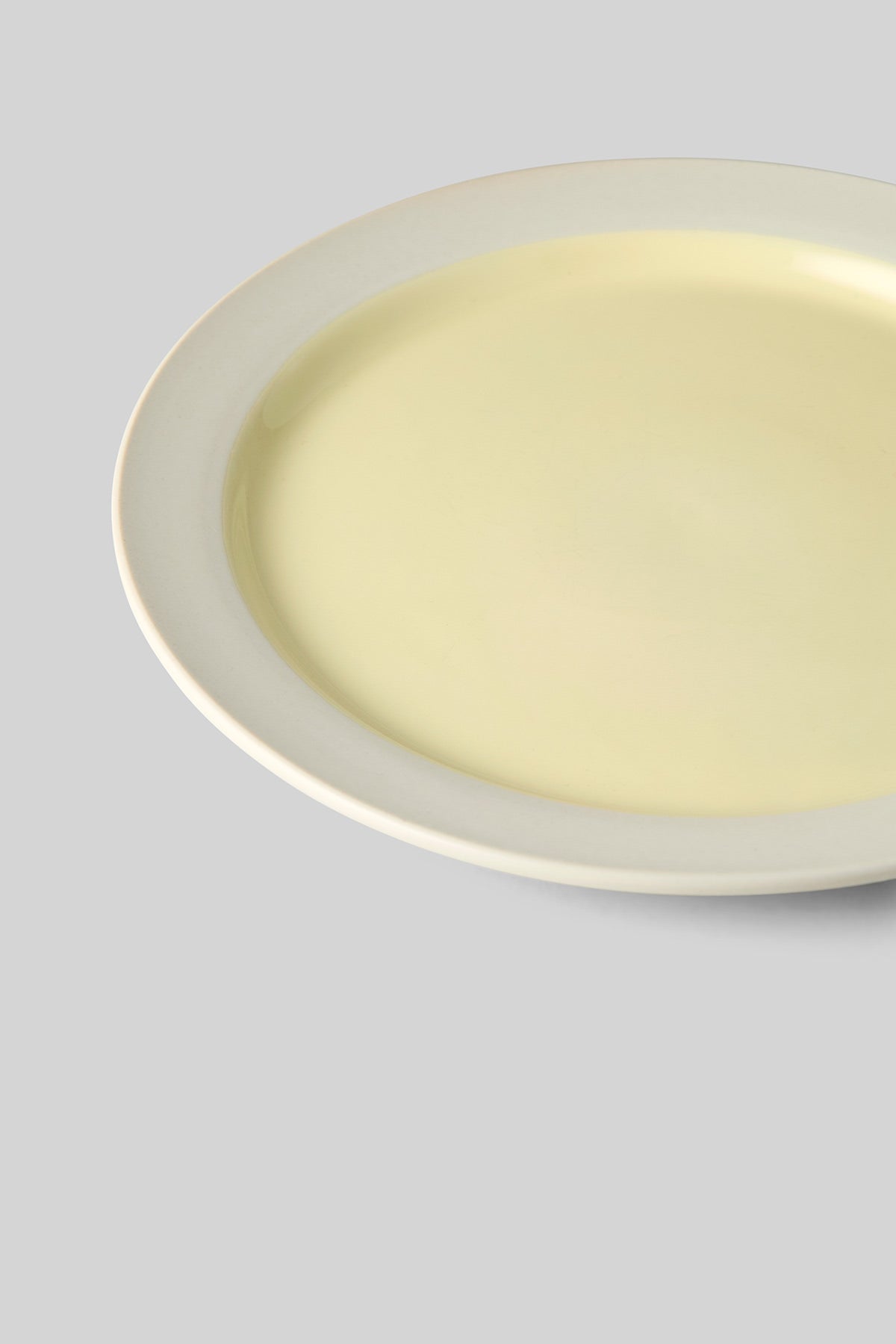 TABLEWARE is the latest collection from Studio About and consists of both colored wine and water glasses, as well as the ceramic plate CLAYWARE in several color combinations. This dinner plate is in the color IVORY/YELLOW and has a two-tone glazing, so the outside is ivory and the inside is glazed in a delicate light yellow color. The ceramic plate comes in a set of 2 pieces.