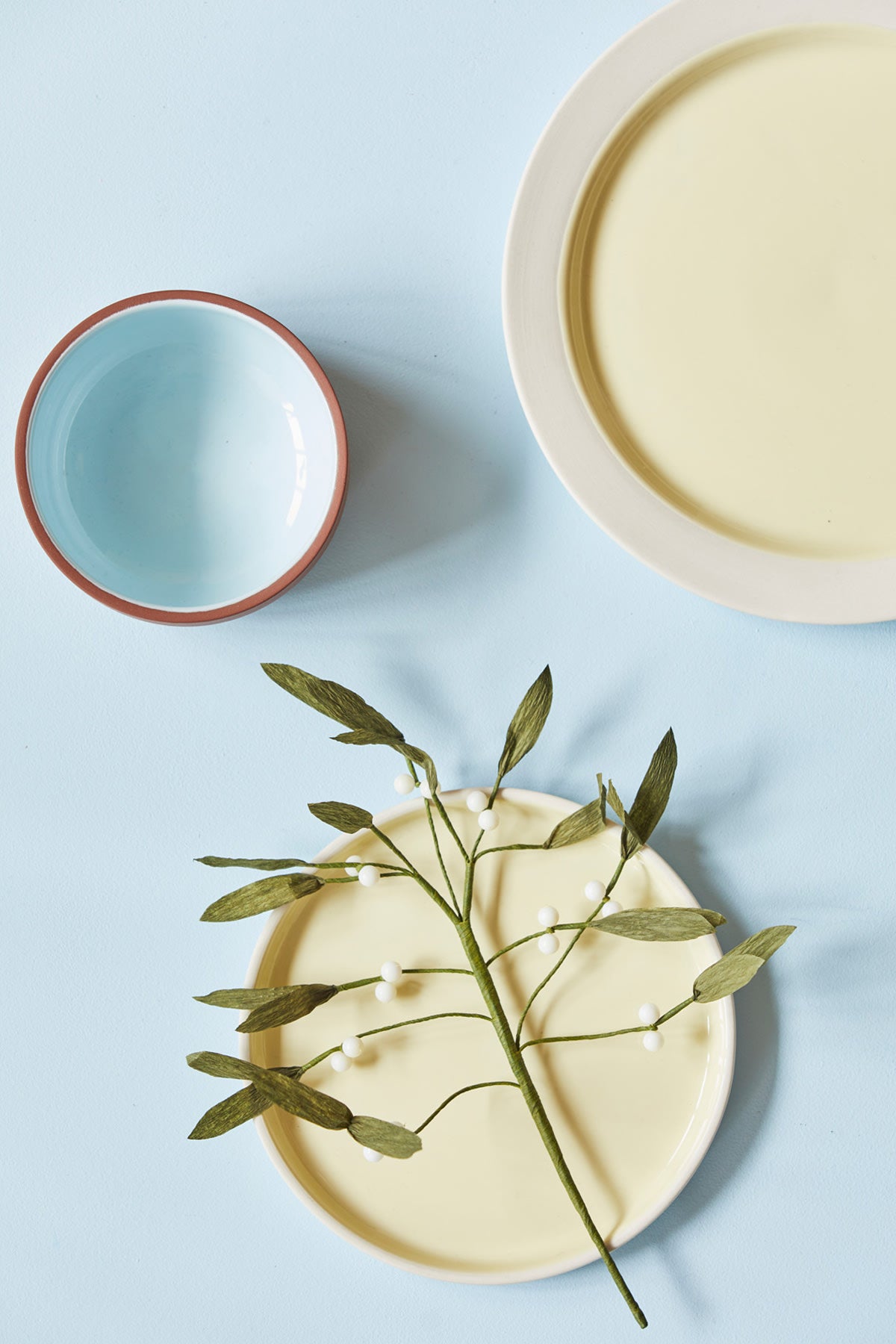 The ceramic plate also comes in the colors TERRACOTTA/RED, TERRAOTTA/ LIGHT BLUE and SAND/GREY, and is also available as bowls and mugs.