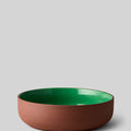 CLAYWARE, SERVING BOWL, LARGE, HIGH, CLAY TERRACOTTA, GLAZE GREEN