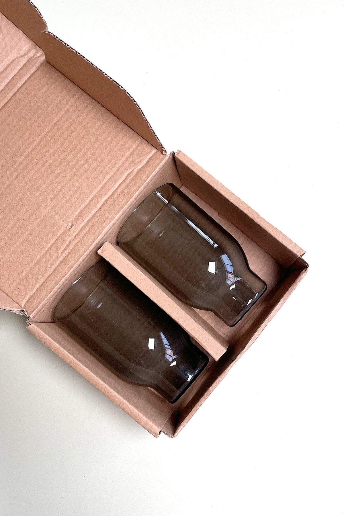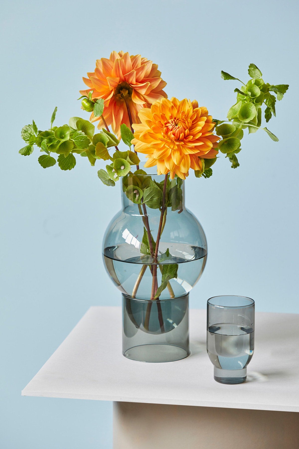 The drinking glass has an elegant and stylish design; the beautiful shape with the smaller base and the smoke-coloured glass make the glass ideal for any home. Coloured drinking glasses are popular but the smoke-coloured glass makes the glass timeless and versatile for any aesthetics of your décor. This means that you can style the glass with both retro thrift finds and modern dinner sets. The glass will for instance look beautiful with retro ceramic plates or colourful dinnerware.