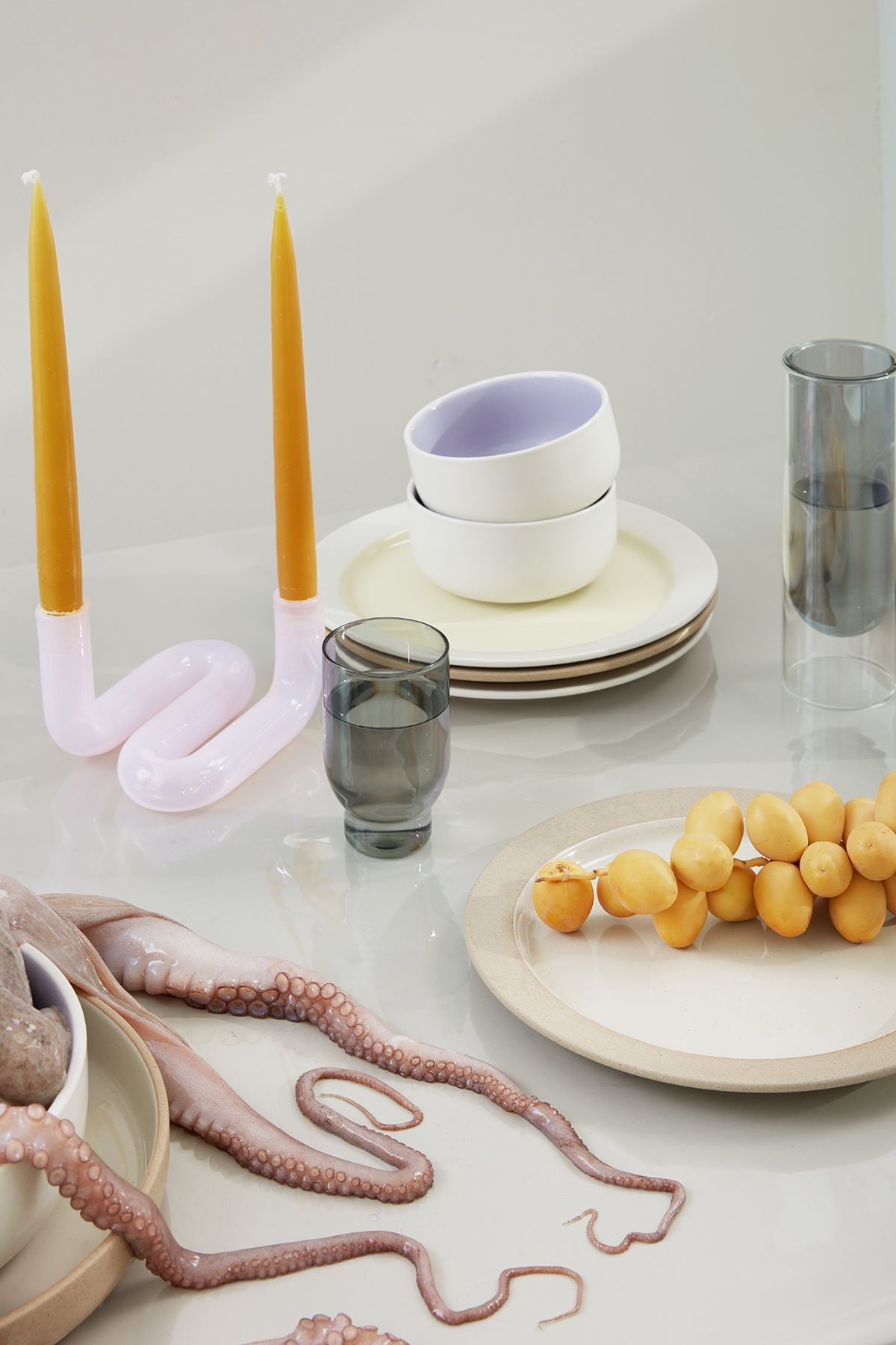 This beautiful water glass is part of Studio About’s new glass collection designed by architect Mikkel Lang Mikkelsen. The drinking glass is a beautiful and colourful addition to your glass collection and can be used for water, coffee and drinks. The drinking glass is in the colour smoke and comes in a 2-piece set.
