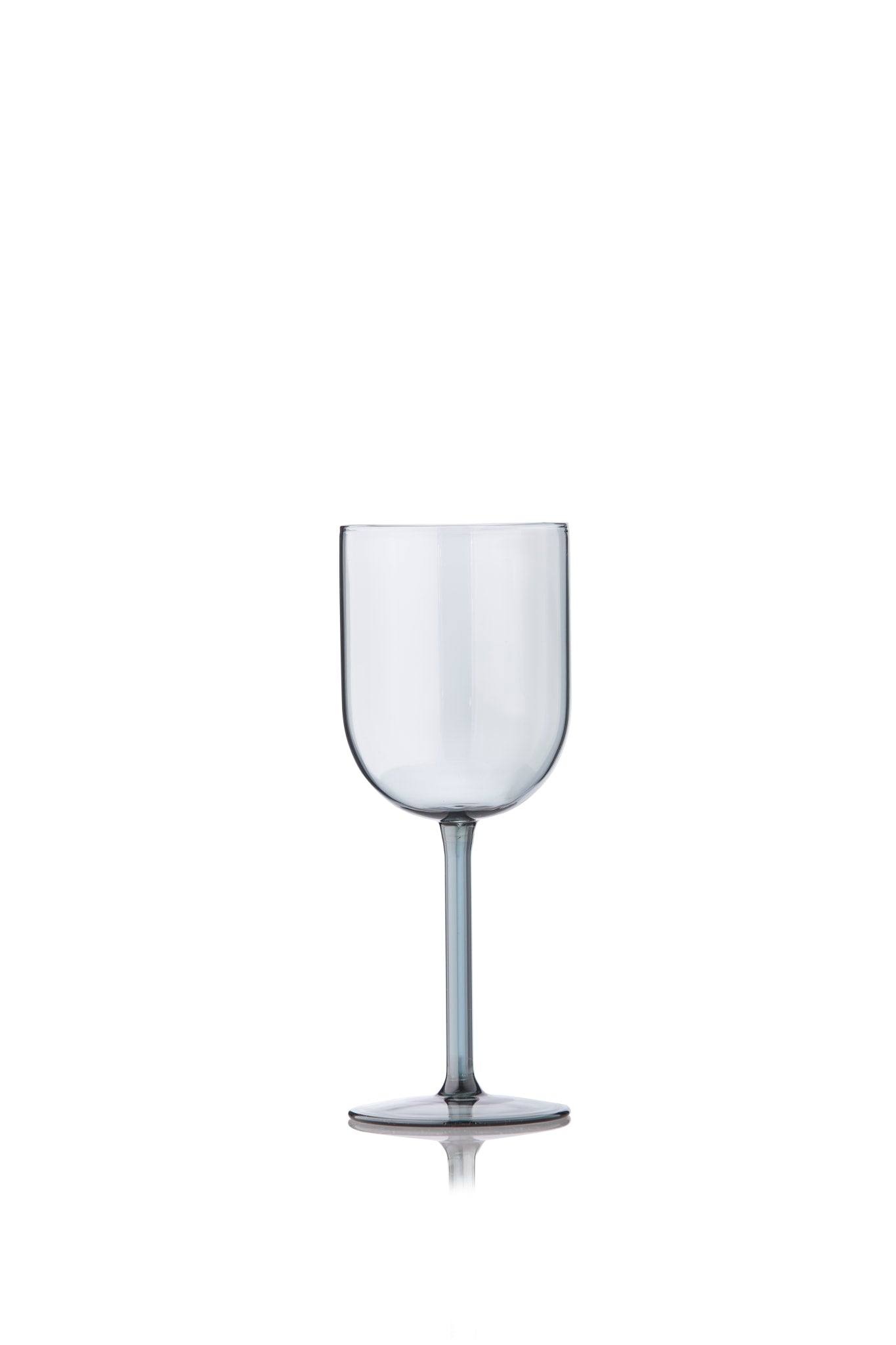 The wineglass has an elegant and simple design; the shape of the glass with its smooth finish and long, slim stem make it stylish and chic, and the smoke-coloured glass makes it luxurious to look at. When the sun hits the glass, the glass will throw beautiful colourful shadows, which will create a light and vibrant table.