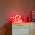 The red neon color creates a captivating eye-catcher and provides a beautiful and colorful glow that creates warmth and intimacy in the room. It is a unique way to add color to your home and is a fresh alternative to traditional white light.