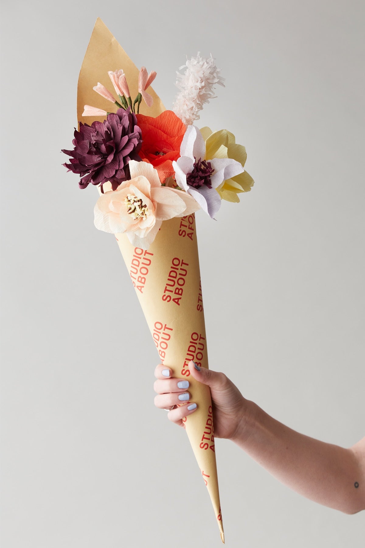 The bouquets consist of a mix our different paper flowers such as African lilies, peonies, palm leaves, poppies, and dahlias in a variety of colours. Go explore among our bouquets and order a bouquet for your dears - or yourself (remember to spoil yourself now and then).