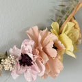 You can also combine your paper flowers with dried flowers in all kinds of colors, it will give a strong expression and is great as a hostess gift or just for decoration at home in a busy everyday life. For example, try combining the beautiful crepe flowers with some dried grasses.