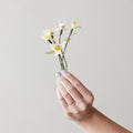 The paper flowers from Studio About are handmade and carefully folded into small tubes. When you receive your flower, unfold the leaves yourself to bring it to life. The crepe paper is easy to shape, so you can adjust the look of the flower and give it a personal touch.