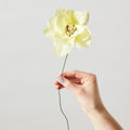 Diese Blume ist aus gefärbtem Krepppapier gefertigt und auf einem langen, biegsamen grünen Stiel montiert. Sie können den Stiel leicht formen, sodass Sie die gewünschte Form und Länge erhalten.