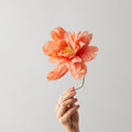 Diese Blume ist aus gefärbtem Krepppapier gefertigt und auf einem langen, biegsamen grünen Stiel montiert. Sie können den Stiel leicht formen, sodass Sie die gewünschte Form und Länge erhalten.