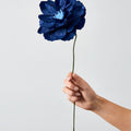 Diese Blume ist aus gefärbtem Krepppapier gefertigt und auf einem langen, biegsamen grünen Stiel montiert. Sie können den Stiel leicht formen, sodass Sie die gewünschte Form und Länge erhalten. Diese Variante ist in der Farbe Blau gehalten, ist aber auch in Rot erhältlich.