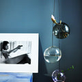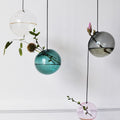 Farbiges Glas ist in jedem Zuhause wunderschön, und diese runden Vasen hängen wunderschön in einem Fenster. Sie können auch mehrere Vasen zusammenhängen und sie als hängendes Stillleben im Wohnzimmer verwenden. Die Hängevasen laden dazu ein, Blumen und Pflanzen auf eine neue Art und Weise zu präsentieren, und es ist eine großartige Möglichkeit, die Natur ins Haus zu bringen. Diese Vase eignet sich am besten für eine einzelne Blume oder zwei, kann aber auch mit einem Steckling verwendet werden, der Wurzeln im Wasser schlägt. Wenn das Licht im farbigen Glas gefangen wird, hebt es die kleinen Blasen im Wasser hervor und verleiht sowohl den Wurzeln als auch dem Stängel einen ganz besonderen Ausdruck.