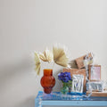 Verwenden Sie die Vase mit ein paar einfachen frischen Sommerblumen oder wählen Sie Blumen in einer kontrastierenden Farbe für einen Farbakzent. Sie können auch die klassische Topfpflanze durch die Vase ersetzen und sie mit kleinen grünen Stecklingen dekorieren, die in der Blase viel Licht bekommen und so optimale Bedingungen haben, um ihr schönes Wurzelsystem zu entwickeln. Für eine völlig pflegefreie Dekoration fügen Sie ein paar Trockenblumen oder eine schöne handgemachte Papierblume hinzu.