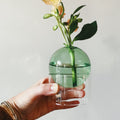 Die Vasen STEHENDE BLUMEN BUBBLE, sind Teil der Kollektion bobble von Studio About. Die Vasen werden in Handarbeit aus hochwertigem Borosilikatglas hergestellt. Die Vasen bestehen aus einer schönen Glasblase, die auf einem transparenten zylindrischen Sockel ruht und einen schwebenden optischen Effekt erzeugt.