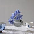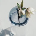 Die STEHENDE BLUMEN BUBBLE ist in 3 Varianten erhältlich. Eine hohe, eine niedrige und eine mit einer größeren Öffnung. Diese Vase ist das niedrige Modell und ist in den Farben Bernstein, Rosa, Blau, Cyan, Grün, Gelb und Rauch erhältlich.