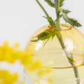 Verwenden Sie die Vase mit ein paar einfachen gelben Stielen für einen Ton-in-Ton-Look oder wählen Sie Blumen in einer Kontrastfarbe für eine farbenfrohe Note in der Einrichtung. Sie können auch den klassischen Topfpflanzenbehälter durch diese Vase ersetzen und sie mit kleinen grünen Stecklingen schmücken, die im Inneren der Blase viel Licht bekommen und optimale Bedingungen haben, um ihr schönes Wurzelsystem wachsen zu lassen. Eine völlig pflegefreie Dekoration erhalten Sie mit ein paar getrockneten Blumen und einer schönen handgefertigten Blume.