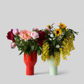 Platziere FLOWERSHADE als Mittelpunkt auf dem Esstisch, im Regal oder auf der Fensterbank. Kombiniere sie mit unseren Papierblumen für einen farblich abgestimmten, langlebigen Akzent – oder mit frischen Blumen der Saison für einen lebendigen Kontrast. Die Vase eignet sich auch ideal für lange Stiele oder minimalistische Arrangements.