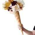Dies ist unser größter Strauß, der perfekt in eine große Vase auf den Tisch passt. Sie können Ihre Papierblumen jedoch auch auf viele andere Arten verwenden, z.B. als Teil der Tischdekoration, als Blumenmanschette oder wie wäre es, einen Kranz für die Wand zu kreieren? Papierblumen halten ewig und benötigen kein Wasser, aber Sie können sie problemlos mit echten Blumen kombinieren, Sie müssen nur den Teil der Blume im Wasser schützen.