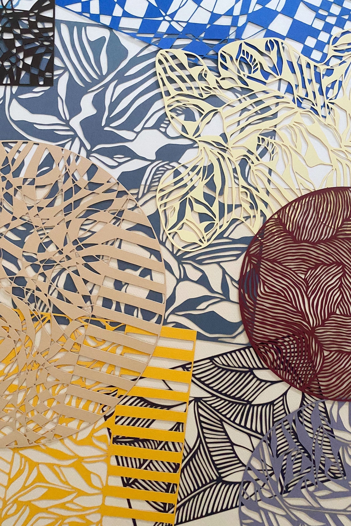 "Ich zeichne meine Motive und Muster normalerweise nicht im Voraus, bevor ich anfange, also ist es für mich tatsächlich ein sehr freier und organischer Prozess, einen Papierschnitt zu machen. Ich setze einfach das Skalpell auf das Papier und lasse es den Weg führen..."