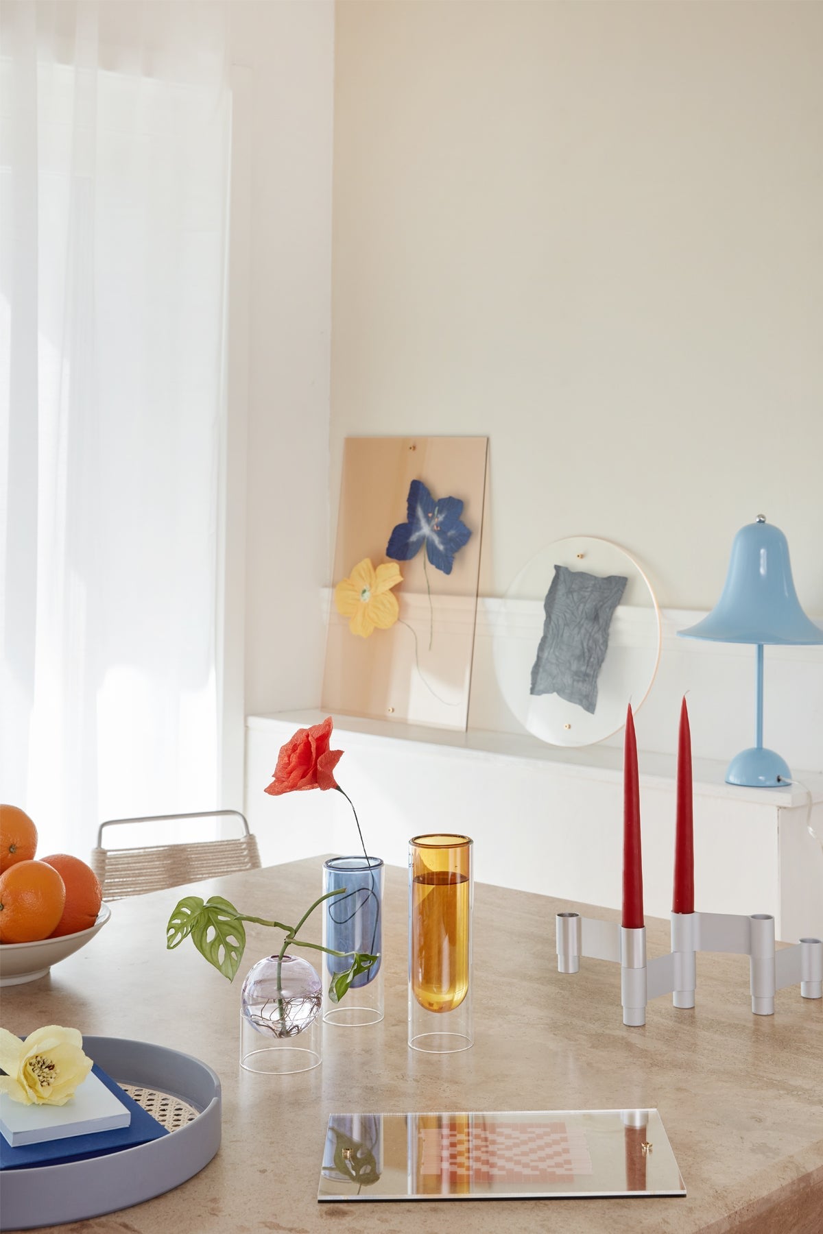 Die BLUMENVASE-Kollektion ist eine Serie von Glasvasen, die für kleinere Blumensträuße oder einzelne Stängel gedacht sind, oder für ein paar Apfel- oder Kirschzweige, wenn der Frühling naht. Die zylindrischen Vasen sind in verschiedenen Größen und Farben erhältlich und wurden von dem Architekten Mikkel Lang Mikkelsen entworfen.