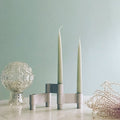 Die LINK-Kerzenhalter-Serie ist eine Kollektion von modularen Kerzenhaltern, die einzeln stehen oder zu einem größeren Halter kombiniert werden können. Die Kerzenhalter sind aus Aluminium gefertigt und hier sehen Sie eine Version in mattgrauem Aluminium.