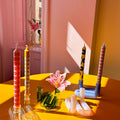 Der Kerzenständer ist in Transparent erhältlich, aber auch in 3 anderen Farben, so dass Sie das perfekte Modell für Ihr Zuhause finden können. Er ist in grün, blau und rosa erhältlich.