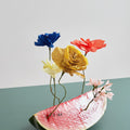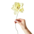 Diese Blume ist aus gefärbtem Krepppapier gefertigt und auf einem langen, biegsamen grünen Stiel montiert. Sie können den Stiel leicht formen, sodass Sie die gewünschte Form und Länge erhalten.
