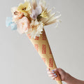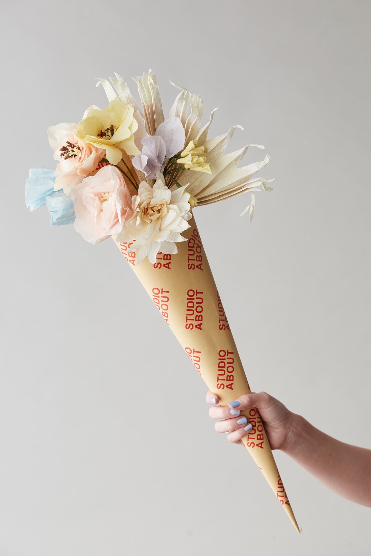 Verleihen Sie den Papierblumen Leben und Charakter, indem Sie die Blätter formen, einige der Blütenköpfe geschlossen lassen und die Stängel biegen, damit jede Blume ihre eigene Ausdrucksform erhält. Sie können auch problemlos getrocknete Blumen mischen und je nach Saison und Stimmung variieren.