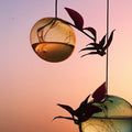 The HANGING FLOWER BUBBLE collection is a series of glass vases designed to carry flowers or plants. The vase is easily hung using the included leather cord.