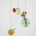 Coloured glass is not only beautiful but is very evocative especially on sunny days where rays of light create decorative shadows on your wall. The small organic bubble vases hang beautifully from a window but there is also the option of combining several vases to create a small hanging still life. Add any flower, a mix of flowers, a stem or cutting or a plant and let your eyes wander as the roots silently grow inside the vase.