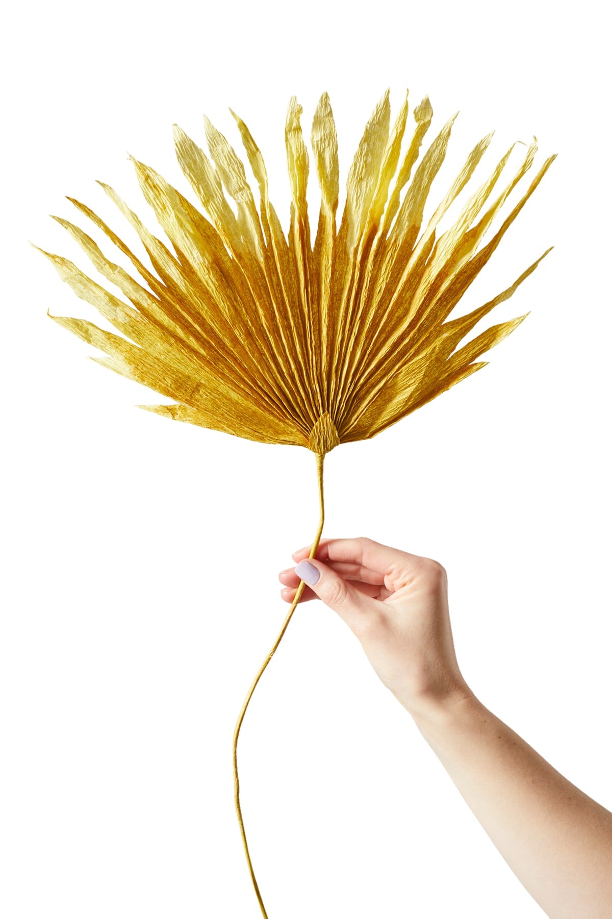 The paper flowers from Studio About are handmade and carefully folded into small tubes. When you receive your flower, unfold the leaves yourself to bring it to life. The crepe paper is easy to shape, so you can adjust the look of the flower and give it a personal touch.