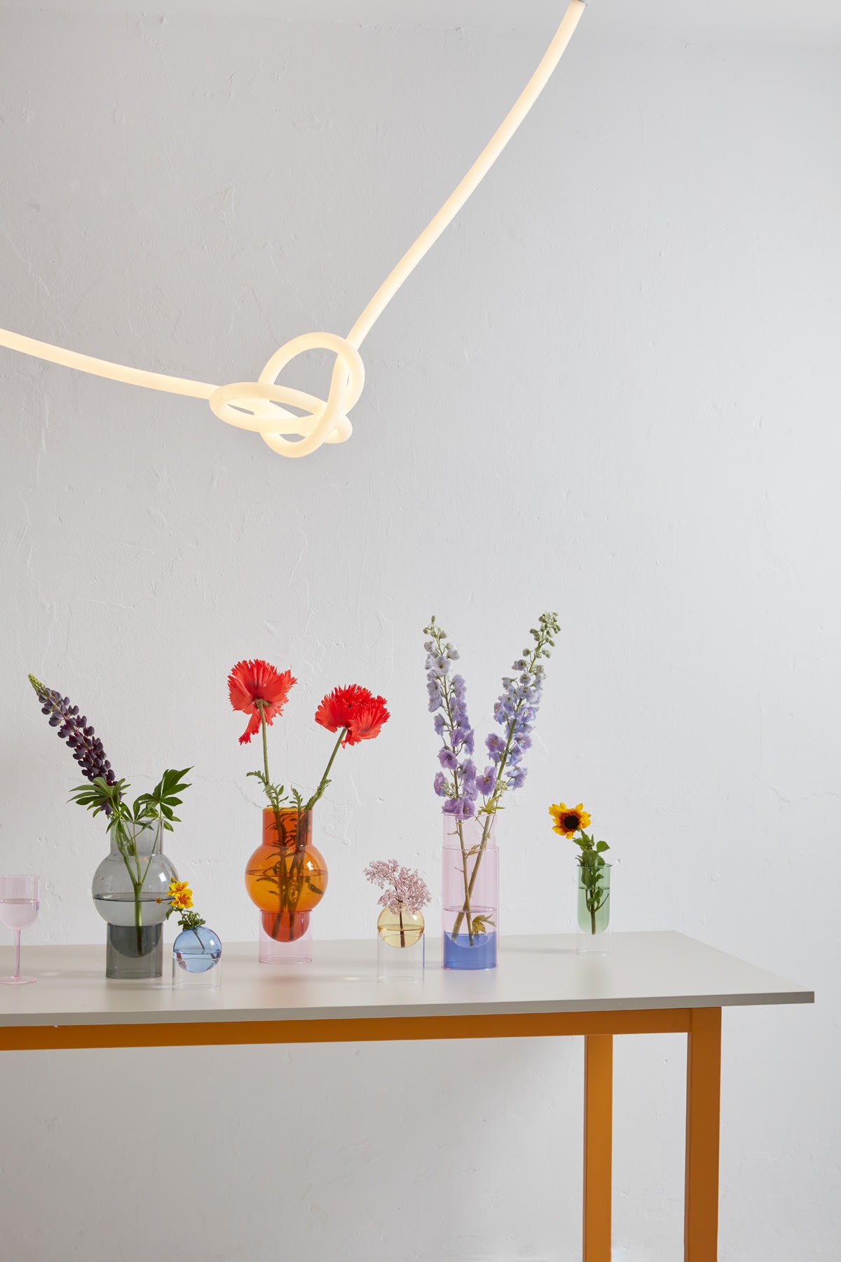 BOUQUET TUBE brings a breath of fresh color to your interior and can be combined with FLOWER TUBE, BUBBLE TUBE or other glass products from Studio About. Play with the colors and combinations of the different types of vases and create a personal expression in your home.