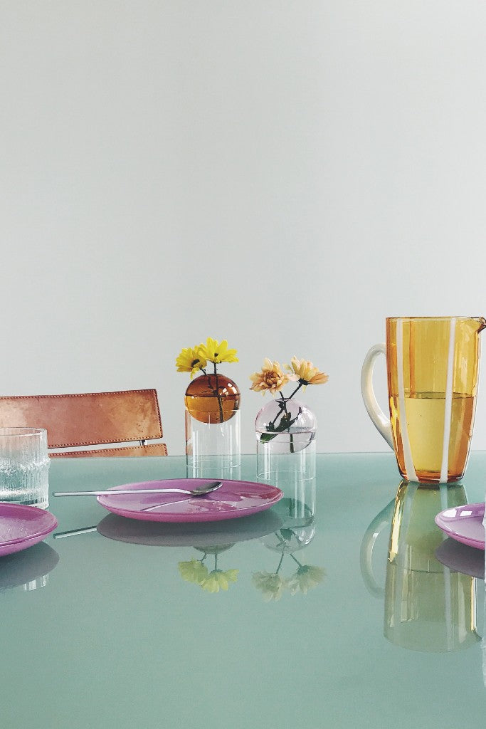 The bubble vase is mouth-blown in solid-coloured borosilicate glass, which is a particularly durable and scratch-free type of glass that can withstand high temperatures and stay neat over time. With ordinary cleaning, the vase will retain its beautiful shine and colour - if you choose a place in the sun, you can even enjoy its beautiful coloured reflections.