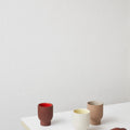TABLEWARE is the new collection from Studio About, consisting of colored wine and water glasses and a ceramic frame. This ceramic cup is part of the CLAYWARE ceramic frame and is in the color SAND/GREY. The cup is partially glazed so that the raw clay is preserved on the outside and the inside of the cup is glazed in a fine, grey color. The ceramic cup comes in a set of 2 and can be used for coffee, tea, or other delicious drinks.