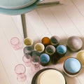 The drinking glass comes in several different colours: rose, smoke, blue and green