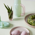 TABLEWARE is a new collection consisting of a ceramic dinnerware set, water glasses and wineglasses in coloured glass, created and designed by architect Mikkel Lang Mikkelsen. This water glass is in the colour rose and has a smaller base, which gives it an organic look. The water glass comes in a set of two and is perfect for water, coffee or lemonade.