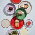As part of Studio About's CLAYWARE series, this ceramic serving dish celebrates the joy of gathering with family and friends over a good meal. The ceramic serving dish is a decorative piece designed to enhance the dining experience and add a unique and stylish touch to the table. When not in use, it will look beautiful displayed in an open cabinet or as a decorative object on a shelf. The serving dish is also available in plates in two sizes, bowls, and cups, and it can be used alone or in combination with other color combinations from the same CLAYWARE series.