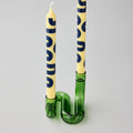 Our WAVE candleholder offers space for 2 candles, where you can either use the classic white crown candles, or add some contrast and use our candles with a lot of different colors and prints. We have candles in both yellow/blue and ochre/rose colors.