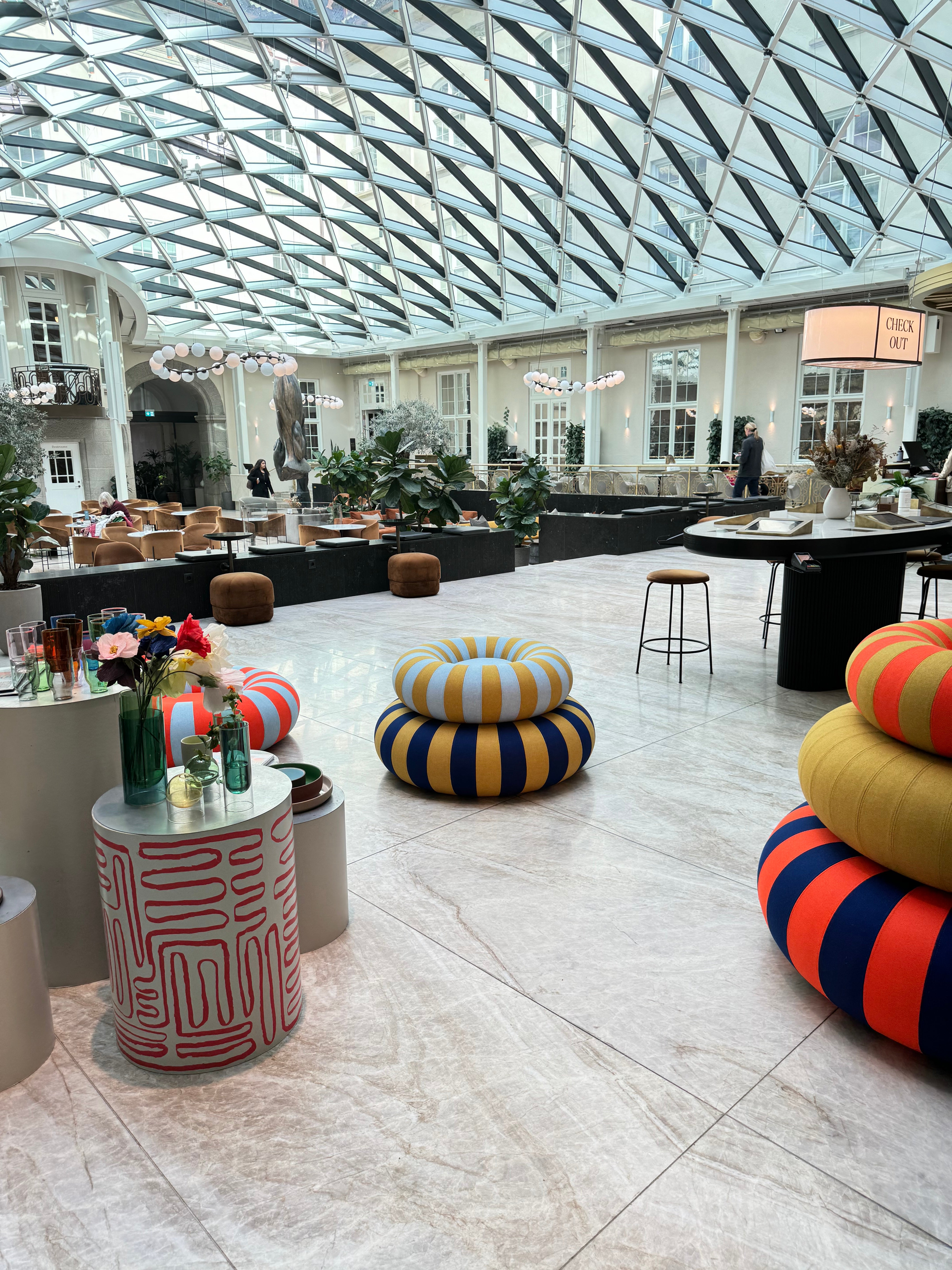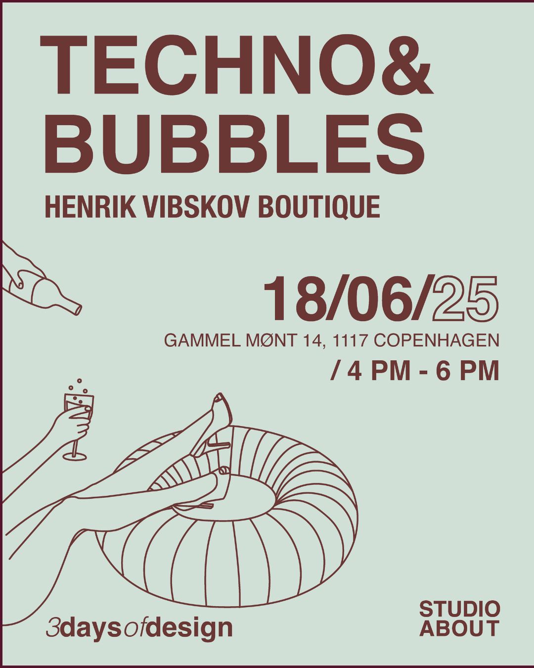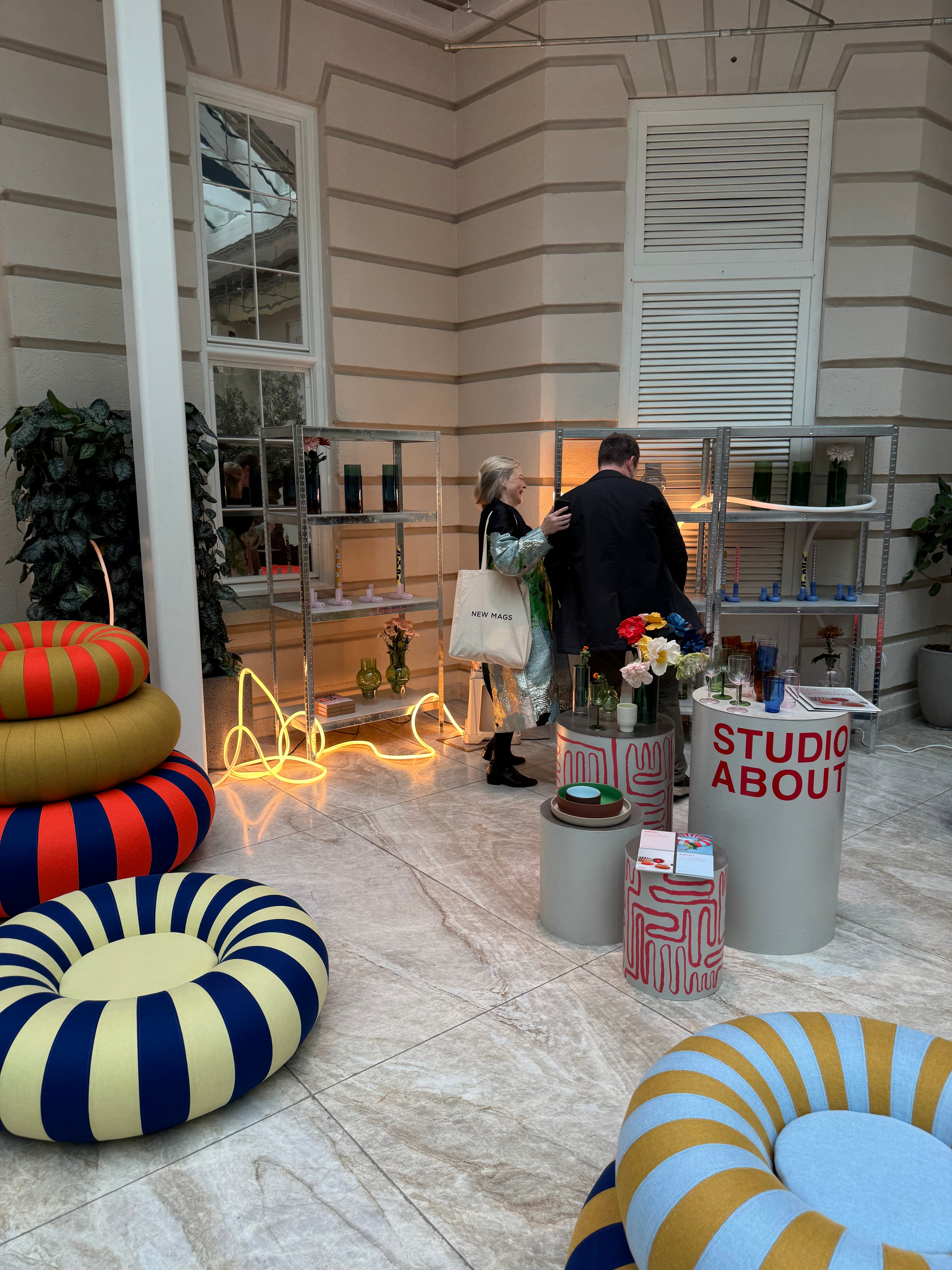 Studio About presents an installation of FLOAT and FLEX TUBE at Henrik Vibskov Boutique during 3daysofdesign. Stop by for bubbles, soft techno, and a playful meeting of colour, shape, and light—where sculptural seating meets glowing forms.