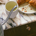 The plate can be used for small meals like lunch, snacks or for beautiful cakes. You can also use the plate as part of the decor, for example by placing rings and earrings on the plate. You can also place paper flowers on the plate, for example wrapped around a napkin as a napkin ring, to make your table setting even more festive.