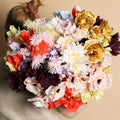 - Mix paper flowers with fresh flowers (remember to protect the stem from water).